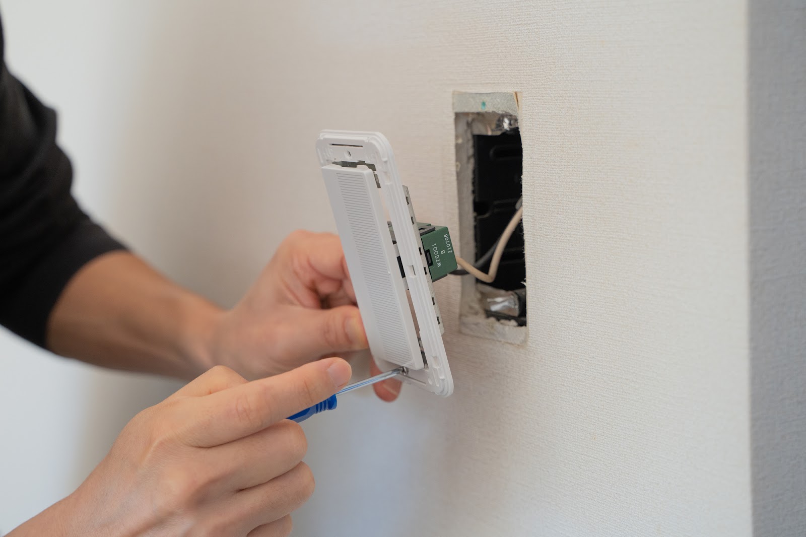 スイッチの取り付け後、壁にできた隙間を埋めるなどの補修を行い、設置箇所の見た目を整えます。