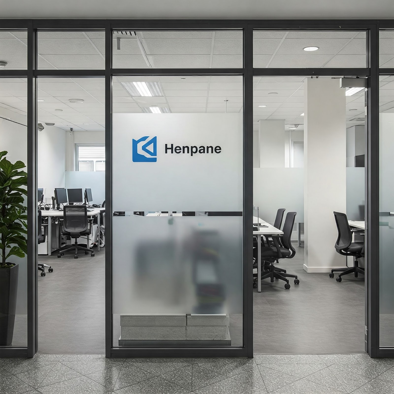 オフィスの入り口から執務スペースが直接見えてしまう状況を改善するために、パーテーションパネルを設置して視線を制御する手法について解説します。